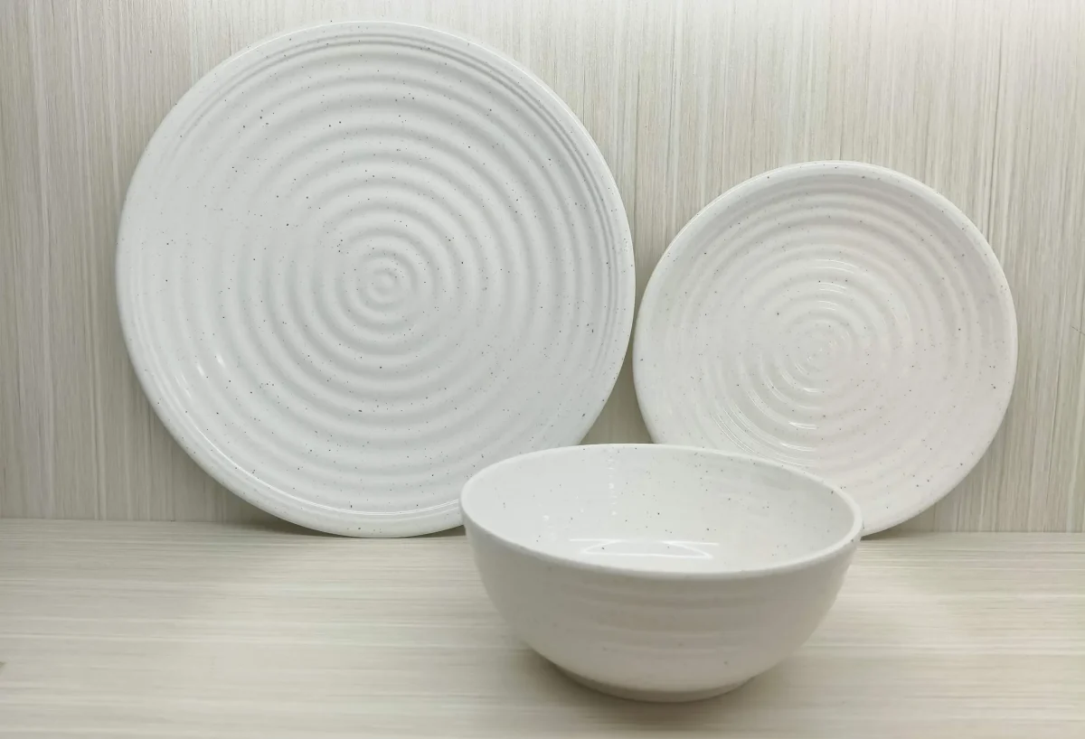 Elevate everyday dining with this 12-piece tableware set crafted from 100% premium melamine. Featuring a unique pearl-tone finish and exclusive mould design, the set includes 4 dinner plates, 4 side plates, and 4 bowls. Lightweight yet break-resistant, it’s perfect for both indoor elegance and outdoor durability.